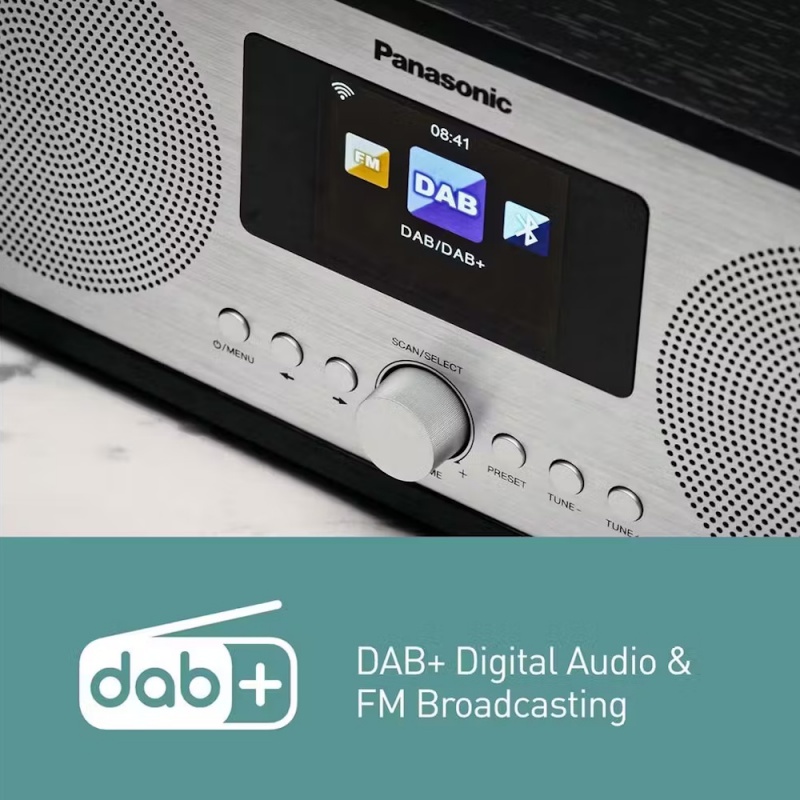 Product Information:Compact yet powerful, the Panasonic RF‑D40 is your all‑in‑one audio companion. Whether you’re tuning into DAB+, FM or browsing international stations via Wi‑Fi, it delivers crisp, immersive sound from its twin full‑range speakers (6 W total). With built‑in Bluetooth 5.3, you can wirelessly stream music from your phone. Its 2.4‑inch color display keeps information clear and adjustable, while a wooden cabinet and brushed aluminum faceplate balance style and function. A USB port lets you play files or charge devices, and a remote ensures control from across the room