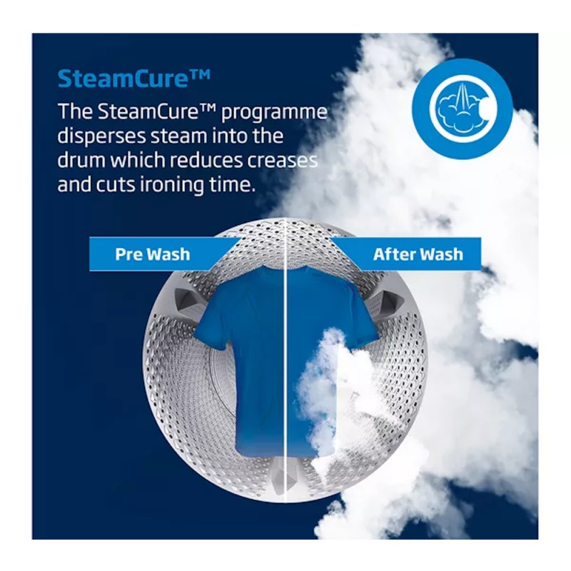 Ideal for busy families, this slim design washer dryer delivers impressive efficiency while fitting neatly into smaller kitchens or utility rooms. Despite its compact footprint, it can wash a full 7kg load in just 28 minutes. The Fast Wash and Dry Programme is perfect for everyday needs, washing and drying up to 5 shirts in just 60 minutes. Plus, with innovative SteamCure technology releasing steam into the drum at the end of each cycle, creases are minimised and the need for ironing is reduced.