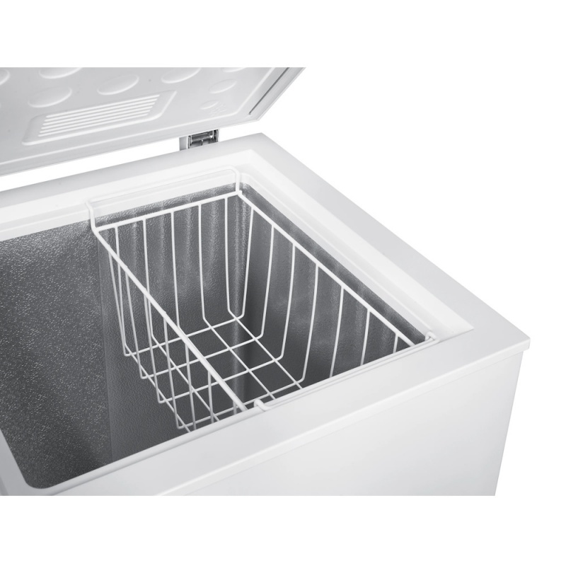 Product Information:This Freestanding Small Chest Freezer features our innovative FreezerGuard technology that allows the appliance to operate reliably in temperatures as low as -15°C. Thanks to this model's FastFreeze shelves, you'll be able to freeze your food 10% faster than other compartments, quickly locking in vitamins and nutrients. And, for additional peace of mind, the high-temperature warning light ensures your frozen goods remain in optimal conditions.