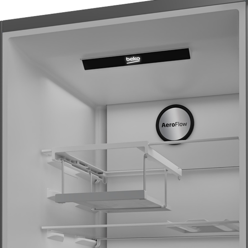 Up to 30% longer freshness. The appearance and shape of food is related to its freshness, and keeping this freshness for longer requires gentle care, just like in nature. The innovative Beko AeroFlow™ cooling system minimises temperature fluctuations inside the fridge and reduces temperature differentiations between shelves with surrounding gentle air distribution for lasting freshness.