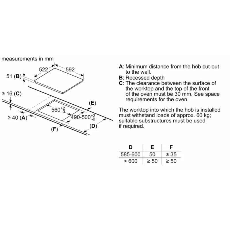 - Required niche size for installation (HxWxD): 51 x 560-560 x 490-500 mm