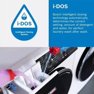 Over-using detergent can feel just like pouring money down the drain. This Bosch Series 6 washing machine has i-DOS, which works out just how many suds are needed for each wash. Just top up the detergent and softener compartments and it'll do the rest. If you need to tackle grubby marks, the AntiStain system deals with the most common stains – it automatically adjusts the temperature, drum movement and soaking times to rinse them out. And you'll be able to speed up washes with the SpeedPerfect mode. It cuts times by up to 65% and it can be used with most programs – great when time's not on your side.