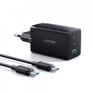 Product Information:The Joyroom TCG01 GaN charger has high output power - up to 65 watts. It has built-in advanced GaN technology that ensures stable charging while generating less heat. The Joyroom TCG01 charger has three ports (2 x USB C and 1 x USB) that allow you to power three devices at the same time. Thanks to universal ports, it can replace up to three chargers and is compatible with various devices: laptops, tablets and phones. The GaN charger also supports Power Delivery, PPS, Quick Charge fast charging protocols. And the small size makes it easy to carry.