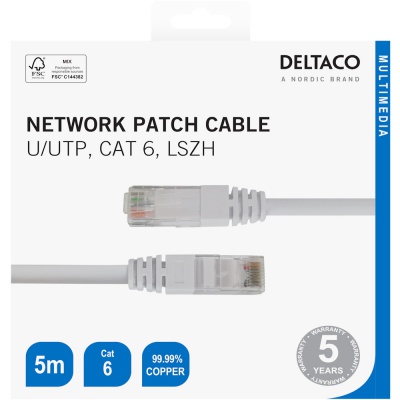 Deltaco 5m Cat6 Network Cable White TP65VR