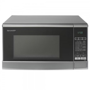 Enhance your kitchen with the stylish microwave oven, featuring a black glass front encased in hairline pattern exterior with matching handle and a crystal blue display and detailed silver dial.