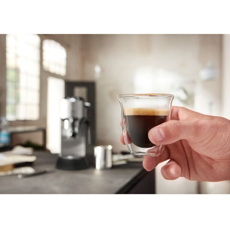 Exquisite taste combined with aesthetic pleasure. Dedica, the stylish pump espresso machine, now with My Latte Art steam wand: perfect to create the silky, fine texture to make your lattes and flat whites. Make the most of any drink. Where there is taste, time stands still.