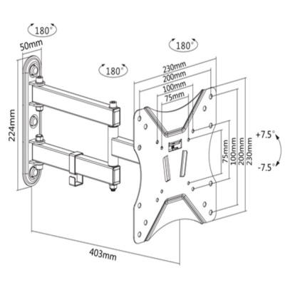 Simple construction allow easy installation. Adjustable swivel arm and tilting VESA plate provides maximum viewing flexibility. Cable clips included keep cables organized. Key hole VESA plate allows TVs to be easily installed. VESA compatible with 75x75,100x100,200x100,200x200.