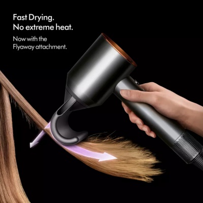 Dyson Supersonic™ Hair Dryer with Flyaway Attachment Fast drying. No extreme heat. Now with the new Flyaway attachment. Five styling attachments. Including the NEW Flyaway attachment. Intelligent heat control. Powered by Dyson digital motor V9. Powerful. And fast.