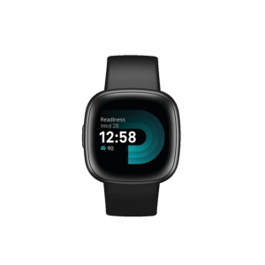 Daily readiness score, stress management score & EDA sensor, health metrics dashboard (SpO2, HRV, skin temp).