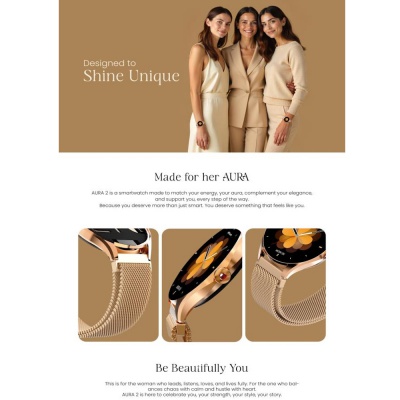 AURA 2 is a smartwatch made to match your energy, your aura, complement your elegance, and support you, every step of the way.