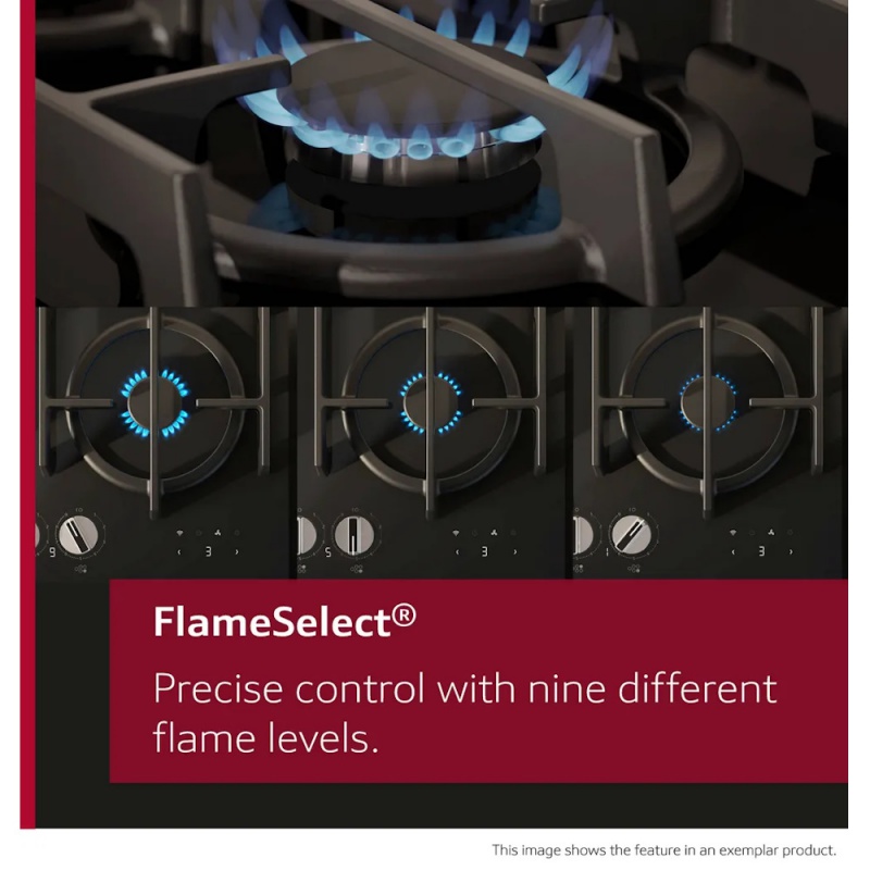 Control your gas hob by numbers and not by eye! The Flame Select® technology regulates the gas output precisely. And because the amount of gas in each of the 9 levels is defined, you ́ll get same cooking results over and over again. Another benefit of the precise steering is that it prevents uncontrolled boling or splashing, which makes cleaning after cooking easier. The product design may differ from the illustration.
