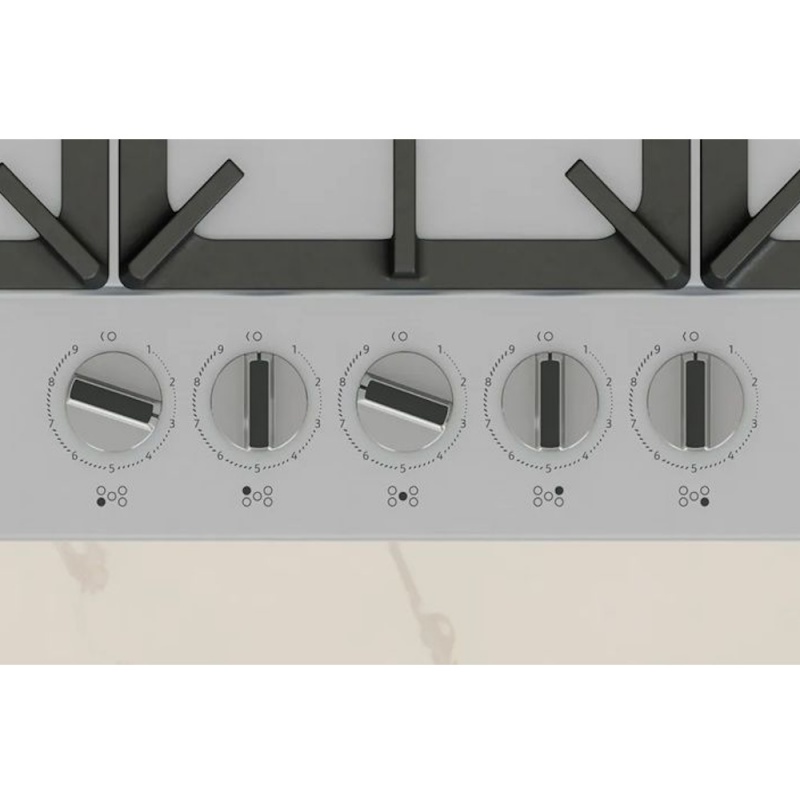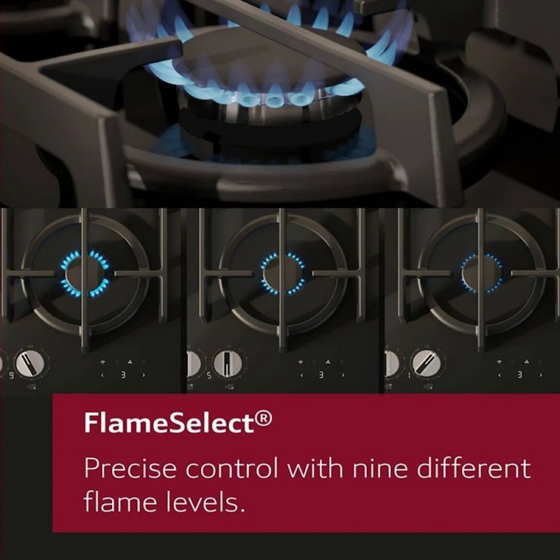 Product Information:This gas hob brings precision, convenience, and power to your kitchen. With FlameSelect technology, you can enjoy consistent cooking results across nine defined flame levels – no more guessing. Removable metallic dials and dishwasher-safe cast iron pan supports make cleaning quick and simple. A high-powered wok burner delivers up to 3.3 kW for intense heat when you need it, while the built-in gas safety cut-off ensures peace of mind by automatically stopping the gas if the flame goes out. Ready for the future, this hob is compatible with renewable biomethane gas – a more sustainable alternative to natural gas.