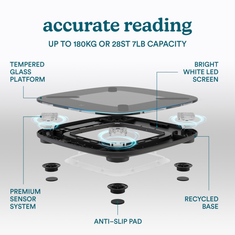 Built with style and user comfort in mind, glo™ features rounded edges that add a clean, minimalist look to your scale. Standing by our commitment to care for the planet, glo™ is crafted with recyclable and recycled materials - even down to the packaging.