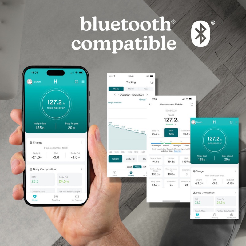 Dive deeper into your health with glo™. Instantly view an accurate weight reading in your chosen units as well as BMI, body fat, skeletal muscle, metabolic age, and so much more by connecting to the Homedics Scales app. Compatible with Apple Health, Google Fit & Samsung Health.