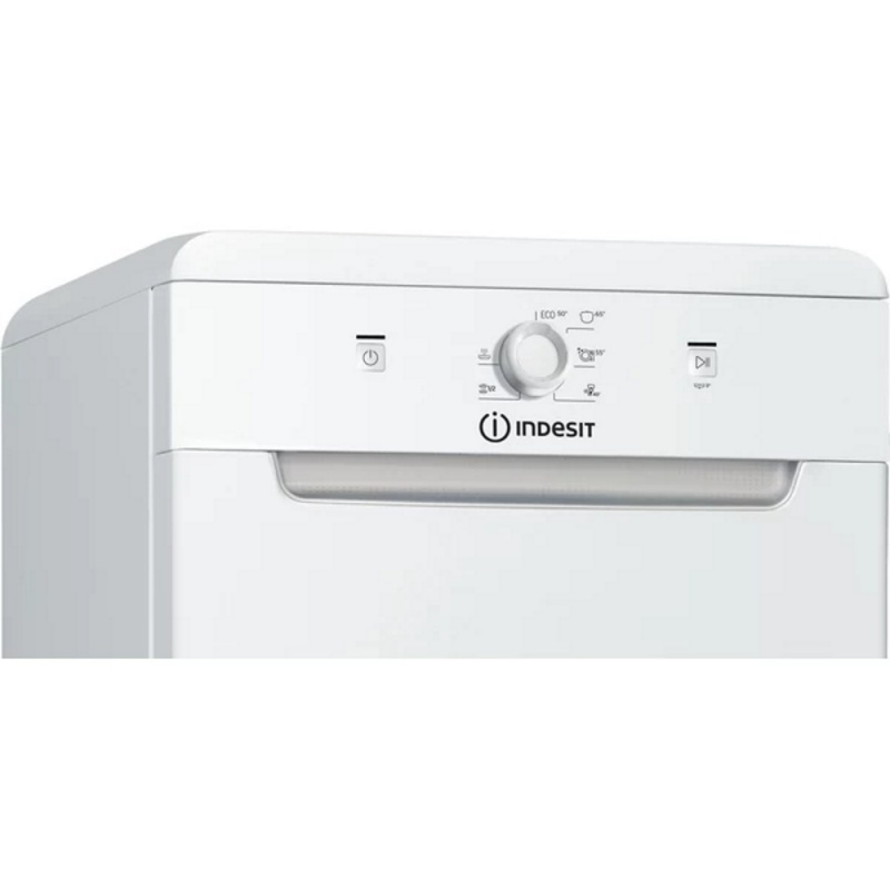 This Indesit Dishwasher features is 45cm in width with an outstanding number of place settings, combined with a small and compact size, so you can enjoy all the space you need, both inside and outside your appliance. Low water consumption combined with space-efficient, compact design. White colour. Adjustable feet, for perfect stability on uneven floors and surfaces.