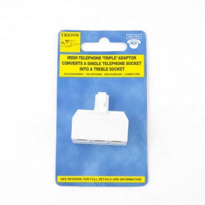 This Adaptor converts a single Telephone Socket into a Triple Socket. It enables you to use three devices from only one Telephone Socket. Telephone and Broadband Modem/Router OR Telephone Answering Machine OR Fax Machine OR three Telephones. No Wiring Required, takes only minutes. Insert Triple Adaptor into Telephone Socket and insert plugs from any two devices into front of Triple Adaptor. White in colour.