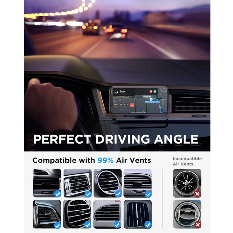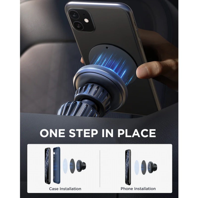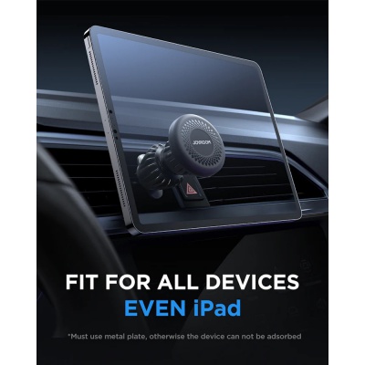 Product Information:Joyroom JR-ZS356 Magnetic Car Air Vent Dashboard Phone Holder is an innovative magnetic layout, strong magnetic force, super stable hold. Soft silicone surface, protects your phone, does not interfere with the signal. Flexible base, fits snugly on the dashboard, firm and stable. Small size, does not block the view of the air vent or driver. Easy to install, one-handed operation, 360 degree free rotation. Works with mobile phones, GPS, mini tablets. The circular design of the metal ring does not interfere with wireless charging or phone signals.