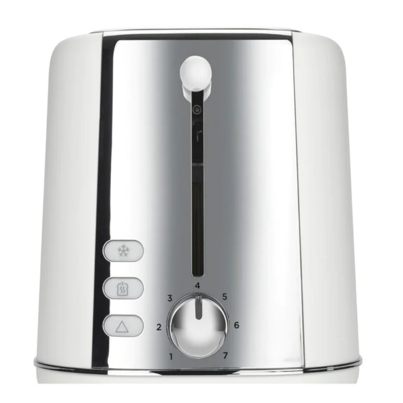 This toaster features classic neutral colours paired with metalic accents, to add a touch of luxury to your kitchen.
