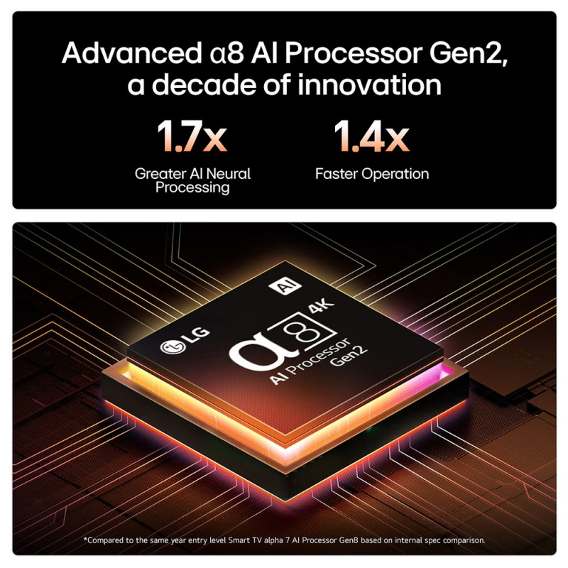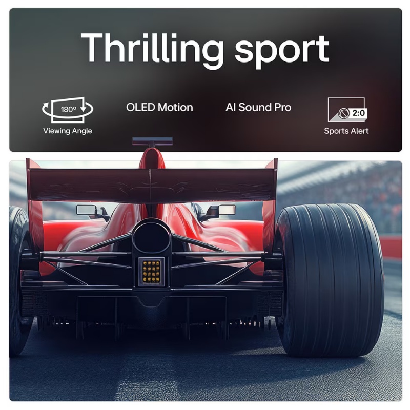 AI Super Upscaling and OLED Dynamic Tone Mapping analyse each frame's elements to enhance resolution, brightness, depth, and clarity.