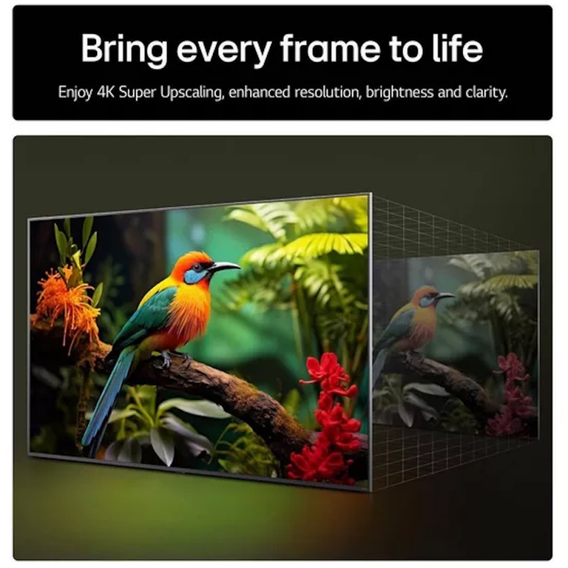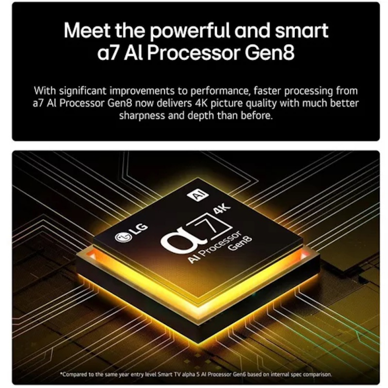 Product Information:The LG UA73 65" TV's packed full of vibrant detail thanks to the 4K Ultra HD resolution, so your favourite shows and films will look stunning. At its heart is the a7 AI Processor - it's the brain of the TV. It's hard at work in the background, intelligently boosting the picture and sound of everything you watch. It even makes sure that you can zip through the menus without any waiting around. Having a movie night? There's plenty to watch on smart webOS, with a huge range of streaming services like Netflix, Disney+ and Apple TV+. Just search for whatever you're in the mood for and grab the popcorn.