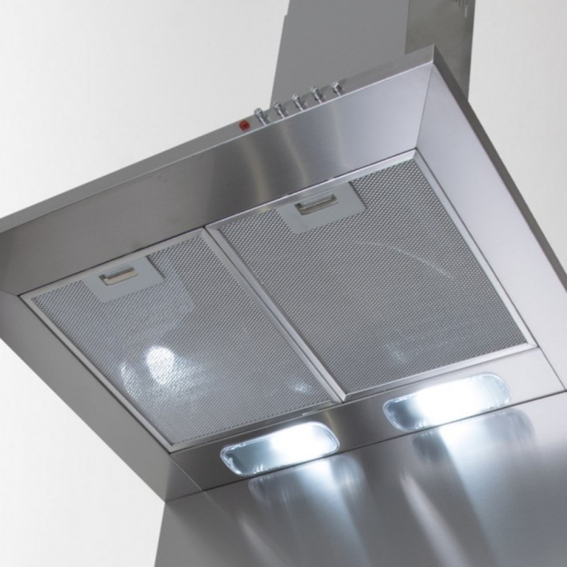 We use 18/10 grade stainless steel on our complete range of hoods and all joints are fully welded and polished to give a quality finish. This extractor features 2x LED lights and 550m³/hr motor.