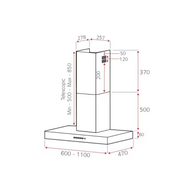 This model has easy to use push button, backlit controls, impressive 550m³/hr motor and 2 x LED 1.3w lights.