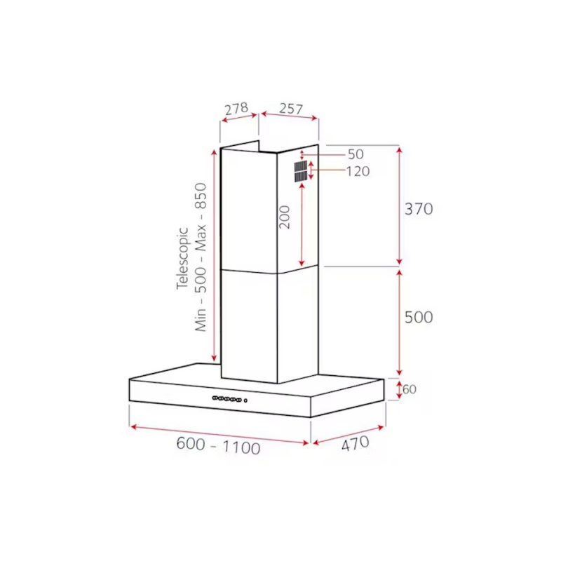 Luxair 60cm Flat Slimline Chimney Hood LA-60-FLT-SS