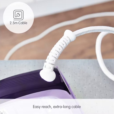 The extra-long 2.5m cable allows you to comfortably reach the length of your ironing board, without being restricted by the cable and plug socket.