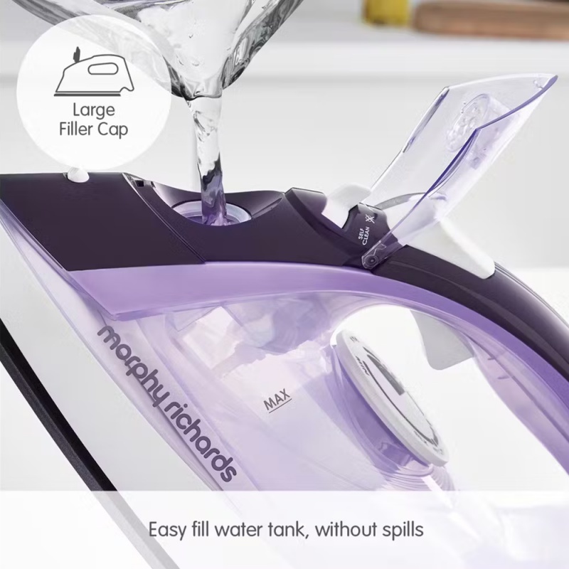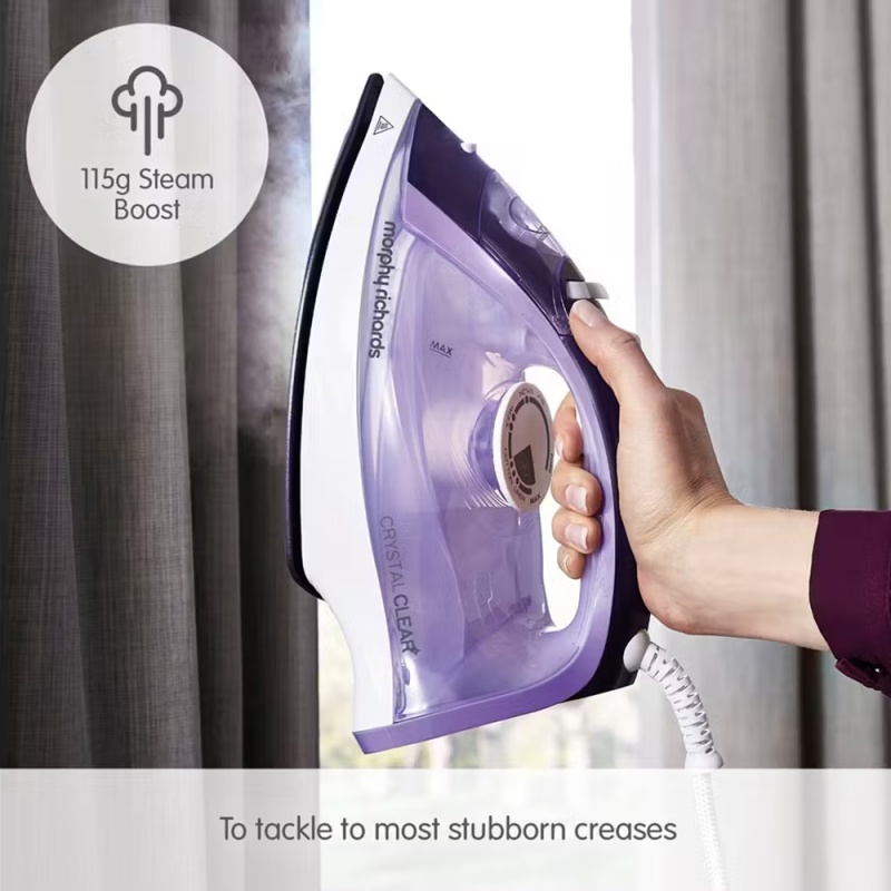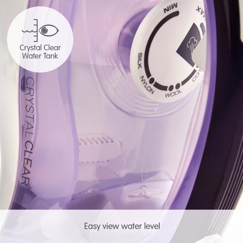 Product Information:The Morphy Richards Crystal Clear Amethyst iron has a clear water tank, making the water level easy to view and comes with an extra-long 2.5m cable for easy reach.