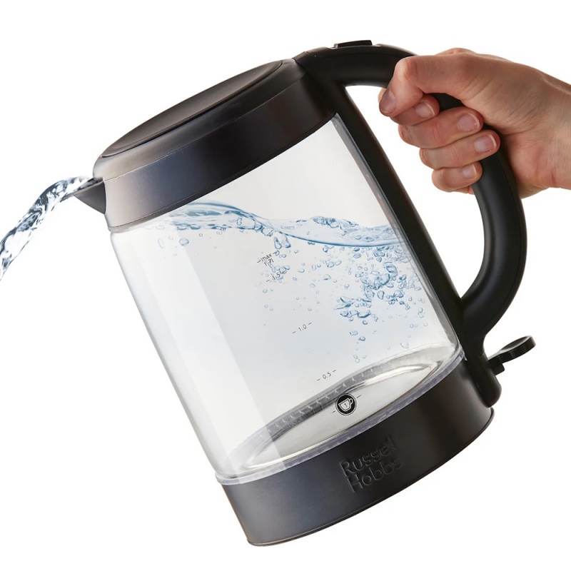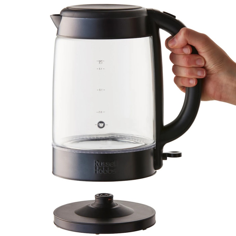 Product Information:The Russell Hobbs Illuminated Black Glass Kettle is a perfect blend of elegant form and high-end functionality. The eye-catching glass body and black stainless-steel accents are highlighted by the blue internal illumination, bouncing off the bubbles as the water boils. A push-to-open lid, perfect pour spout and 360o base give this kettle the wow performance factor, too.