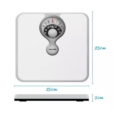 Product Information:Compact design and practicality come together in the Salter Magnified Display Mechanical Bathroom Scales. The dial comes with a nifty magnifying lens, so despite its petite size, it’s easy to read from a distance and with a fine resolution for higher accuracy, you’ll get your weight reading down to the detail in either Stones or Kilograms. These clever bathroom scales are designed to squeeze into the smallest spaces, without sacrificing the functionality of larger weighing scales. And the comfortable, cushioned mat is an inviting little extra just for tired feet.