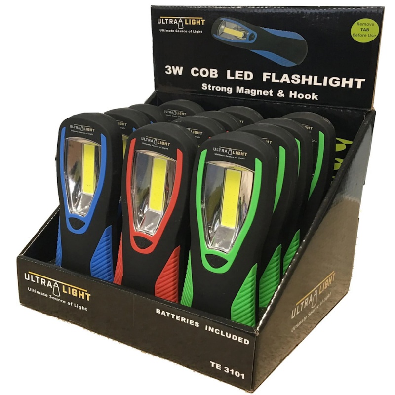Product Information:This powerful 24 LED Work Torch with magnet is compact and ready to use. The light has an incredibly strong beam, powered by 24 superbright individual LED bulbs. This Torch has a magnetic button on the back that can be attached to any magnetic surface and a swivel hook to hang and direct light where you need it, when you need it. It’s ideal for use during power failures, emergency lighting, walking, camping or general purpose lighting. There is no need to purchase batteries as it comes with 3 x AA Batteries included. This Torch is rubberised for easy handling and is lightweight and easy to use.