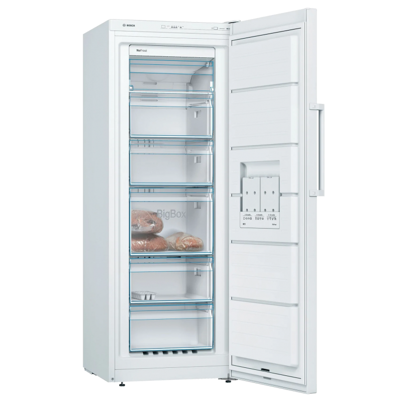 Defrosting a freezer by hand can be very annoying and time-consuming. Thanks to our freezers with No Frost, you can easily remove this task from your to-do list. Unlike conventional freezers, the air humidity in a No Frost freezer is collected in a central chiller unit, which automatically defrosts on a frequent basis. The condensation is then channelled outside out of the freezer, where it then evaporates. No Frost keeps your freezer free of not only ice, but also the need for manual defrosting.