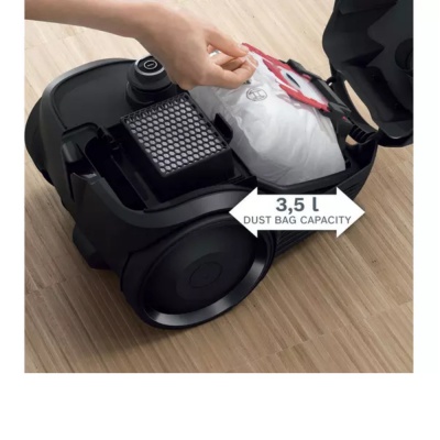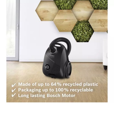 If you have allergies, this vacuum cleaner is a great option - with the PureAir hygienic filter it will leave the air it releases almost free of fine dust, bacteria and pollutants. The vacuum cleaner is made of up to 64% recycled plastic, has a long-lasting motor and has fully recyclable packaging - no more worries about your cleaner not being kind to the environment. It comes with upholstery and crevice nozzles, perfect for cleaning small spaces in your home even above floor.  Your vacuuming will be easier and more effective picking up dust thanks to the powerful HiSpin motor. With a large dust bag you won't have to change it too often, so you can save your time as well as money.